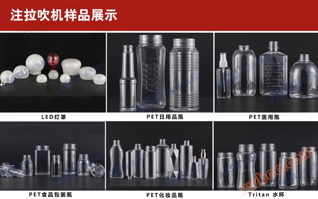 ■Wydmucharka do dmuchania butelek ISB 1100N-3 jest stosowana w szerokim zakresie, dostępnych jest wiele rodzajów surowców, w tym produkty PC / PMMA / PP / PET / PS / Tritan, w tym: osłony LED, żarówki PC, kubki kosmiczne, czajnik, butelki do napojów, pojemnik wewnętrzny; Seria PET obejmuje: butelki kosmetyczne, butelki na leki, butelki szerokoustne, opakowania na żywność, butelki na napoje; Seria PP obejmuje: butelki do mleka, butelki do wody, czajniki, opakowania spożywcze i inne.