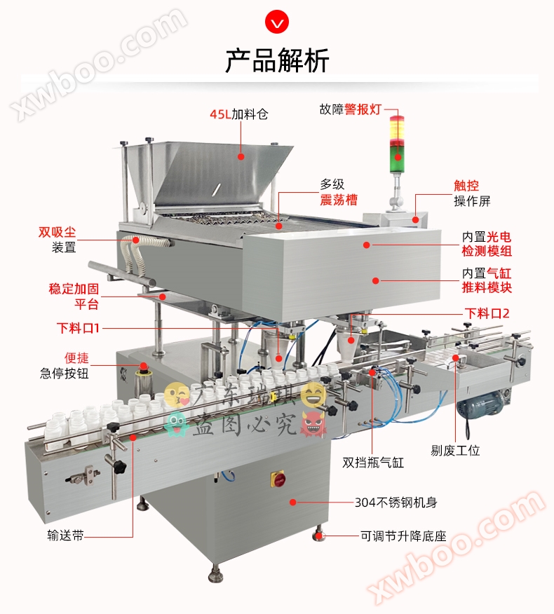 Zalety maszyny: 1. wysoka dokładność liczenia cząstek. Dokładność liczby ziaren przekracza 99,97%, co jest wyższe niż standardy branżowe.