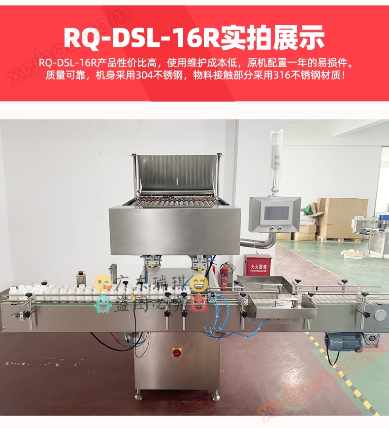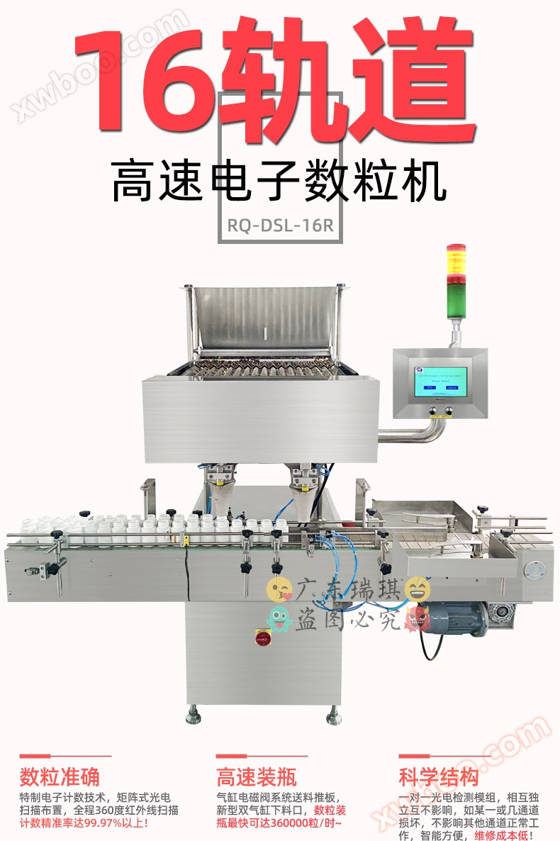 6, RQ-DSL-16R maszyna do liczenia cząstek elektronicznych wyposażona w funkcję automatycznego wykrywania i usuwania, butelki o niedokładnej ilości napełnienia są automatycznie usuwane.