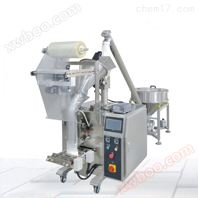 Ta mała automatyczna maszyna do pakowania jest zaprojektowana specjalnie do opakowania proszku spożywczego, całkowity mechanizm podawania maszyny z urządzeniem regulacyjnym pionowym, połączenie między osłoną śrubową a wkładnikiem przy użyciu zamknięcia, aby szybko oczyścić pozostałe materiały bez potrzeby żadnego narzędzia.